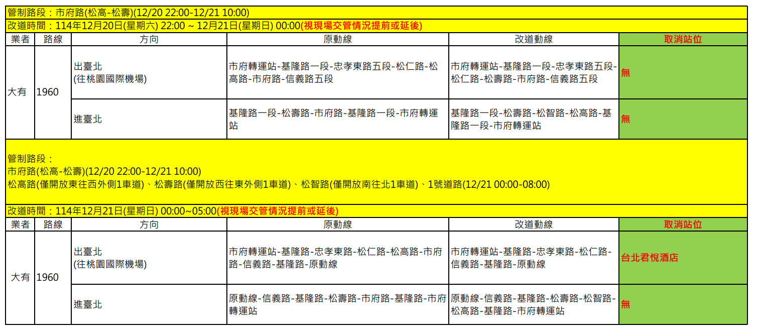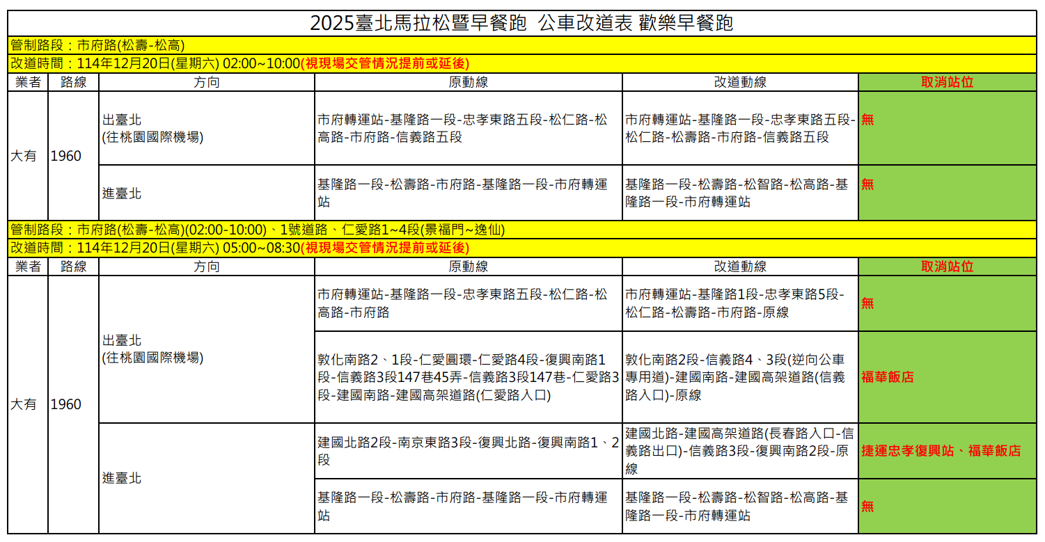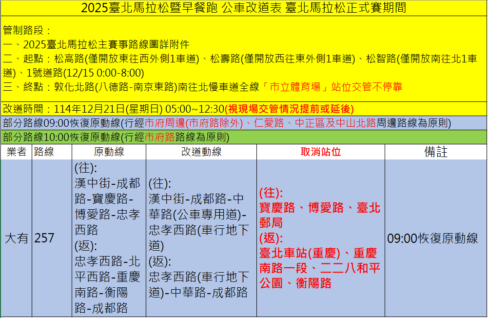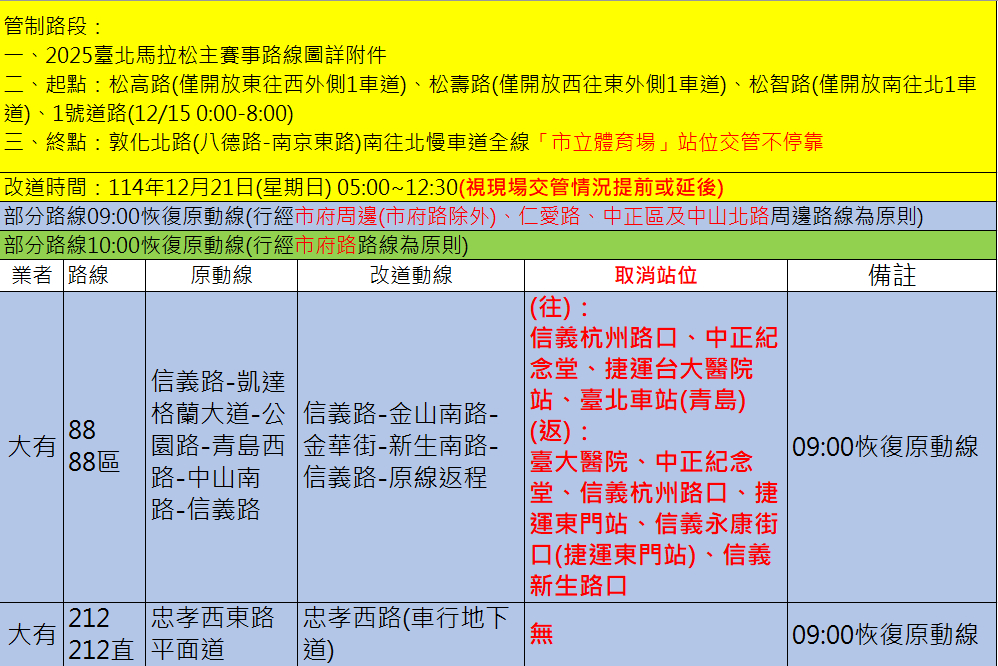 因應【2025台北馬拉松】交通管制,